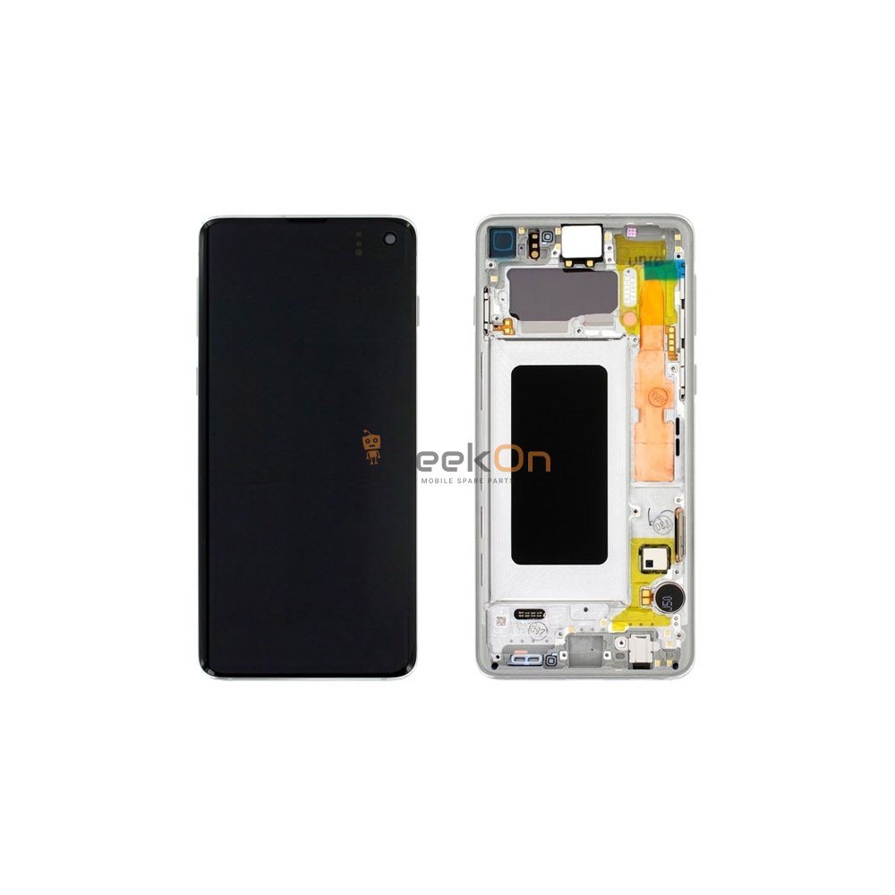 Γνήσια Οθόνη LCD Και Μηχανισμός Αφής Με Πλαίσιο για Samsung Galaxy S10 G973F GH82-18850B Prism Silver (Service Pack)