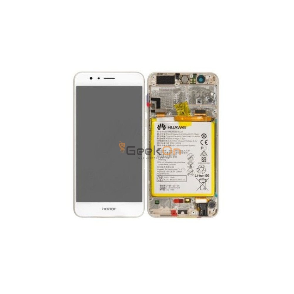 Γνήσια Οθόνη LCD και Μηχανισμός Αφής με Πλαίσιο και Μπαταρία για Huawei Honor 8 02350UEN Pearl White (Service Pack)