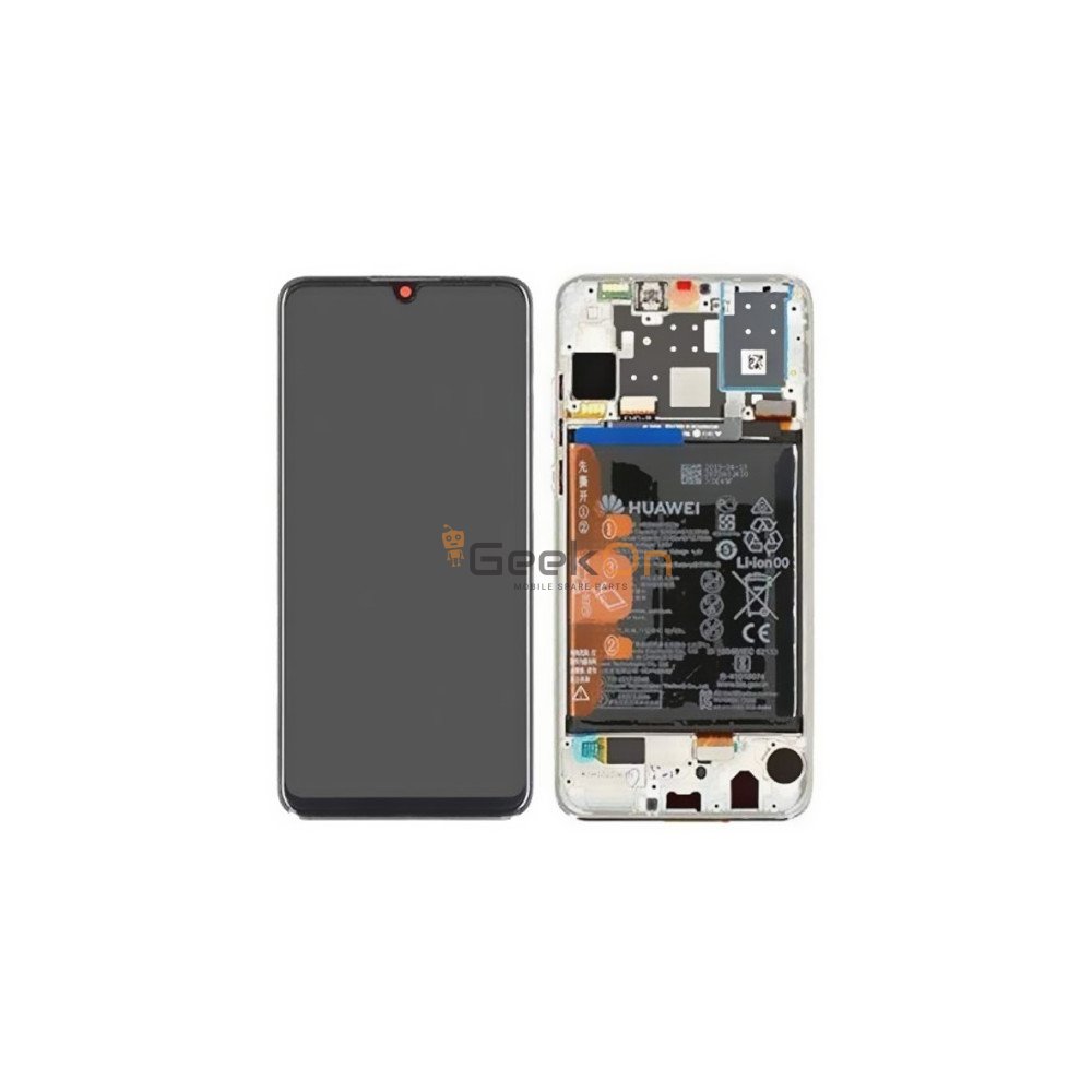 Γνήσια Οθόνη LCD και Μηχανισμός Αφής με Πλαίσιο και Μπαταρία για Huawei P30 Lite MAR-L01A / MAR-L21A / MAR-LX1A 02352RQC Pearl White (Service Pack)