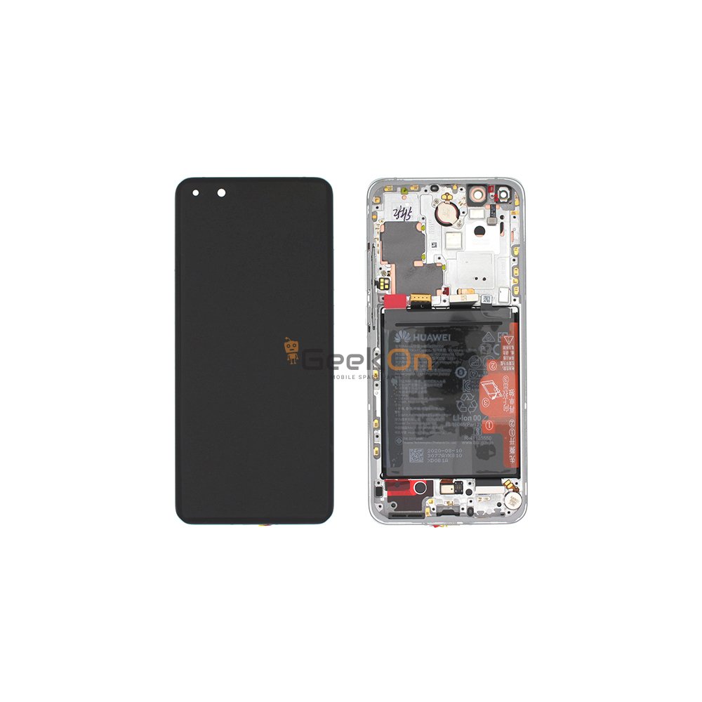 Γνήσια Οθόνη LCD και Μηχανισμός Αφής με Πλαίσιο και Μπαταρία για Huawei P40 Pro 02353PJK Ice White (Service Pack)