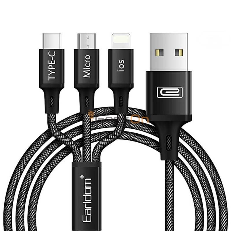 Καλώδιο Φόρτισης Earldom EC-iMC17 USB to 3in1 Type C / Micro Usb / Lightning 1m Ασήμι