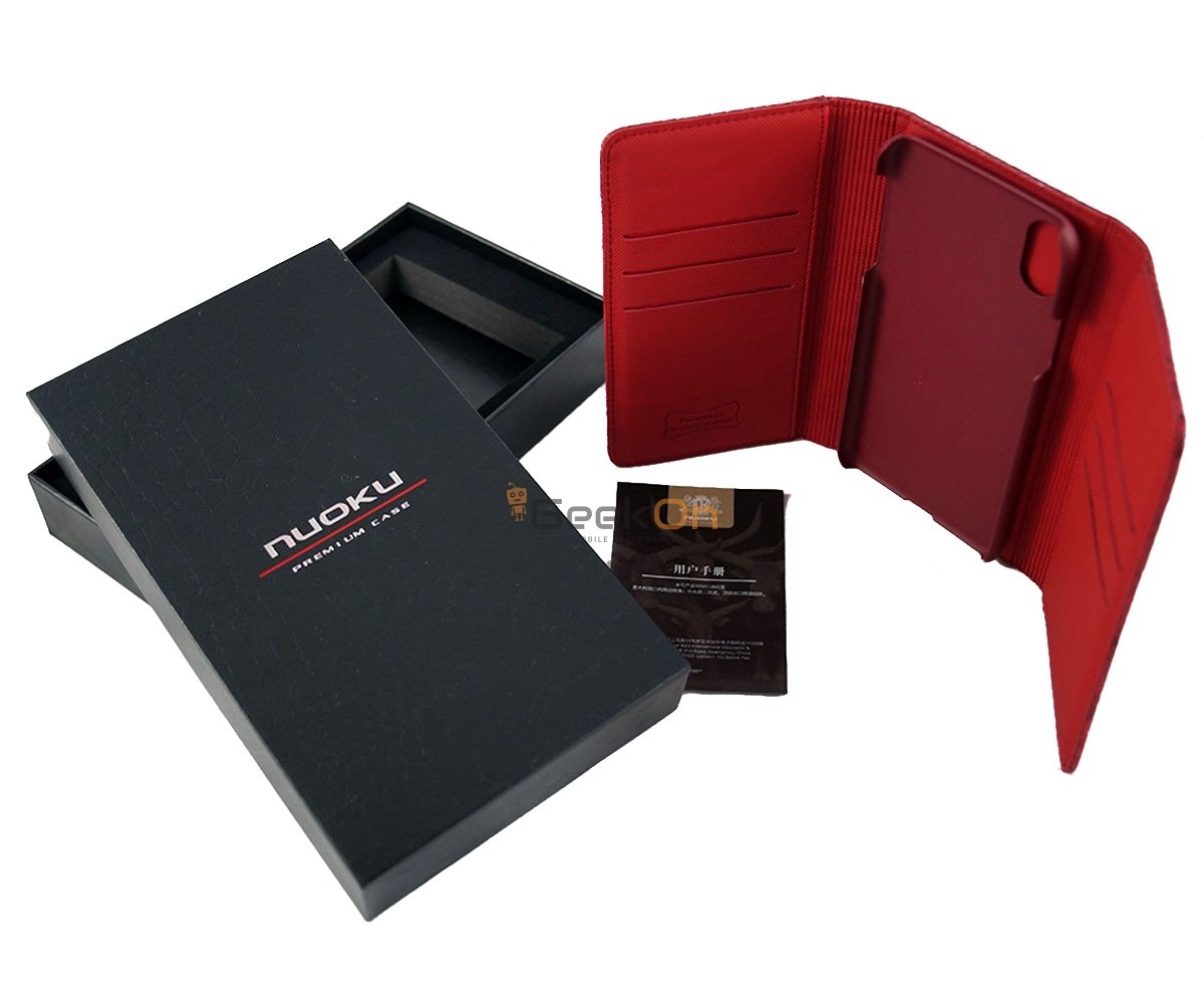 Θήκη Πορτοφόλι Δέρμα NUOKU iPhone Χ Κόκκινο